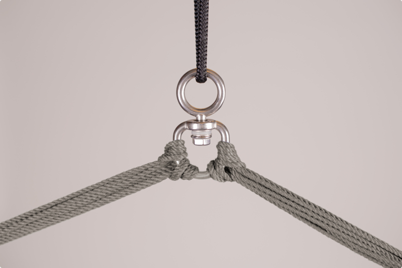 Befestigung: Für die Aufhängung eines Hängesessels benötigen Sie einen Aufhängepunkt, der sich an der Zimmerdecke, einem Ast oder einem Balken befindet. Ein Hängesessel ist platzsparender als eine Hängematte und lässt sich gut in Ihren Wohnraum integrieren. Wird er nicht gebraucht, kann er mit einem Handgriff abgehängt werden.
