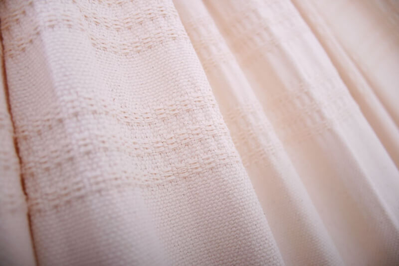 Befestigung: Als klassische Tuchhängematte ohne Spreizstab wird sie zwischen zwei festen Punkten montiert. Für leichtes Schaukeln kann sie U-förmig aufgehängt werden; für Liegen und Schlafen empfiehlt sich eine nur leicht bauchige Durchhängung. Benötigter Mindestabstand zwischen den Aufhängepunkten: ca. 360 cm.
