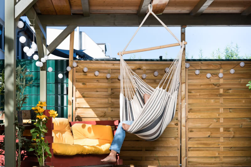 Befestigung: Der 110 cm Holzspreizstab ermöglicht eine einfache, kompakte Aufhängung. Empfohlene Mindest-Aufhängehöhe: 200 cm. Geeignet für Decken- oder Balkenmontage mit passendem Befestigungsmaterial; Gestell ist nicht im Lieferumfang enthalten.