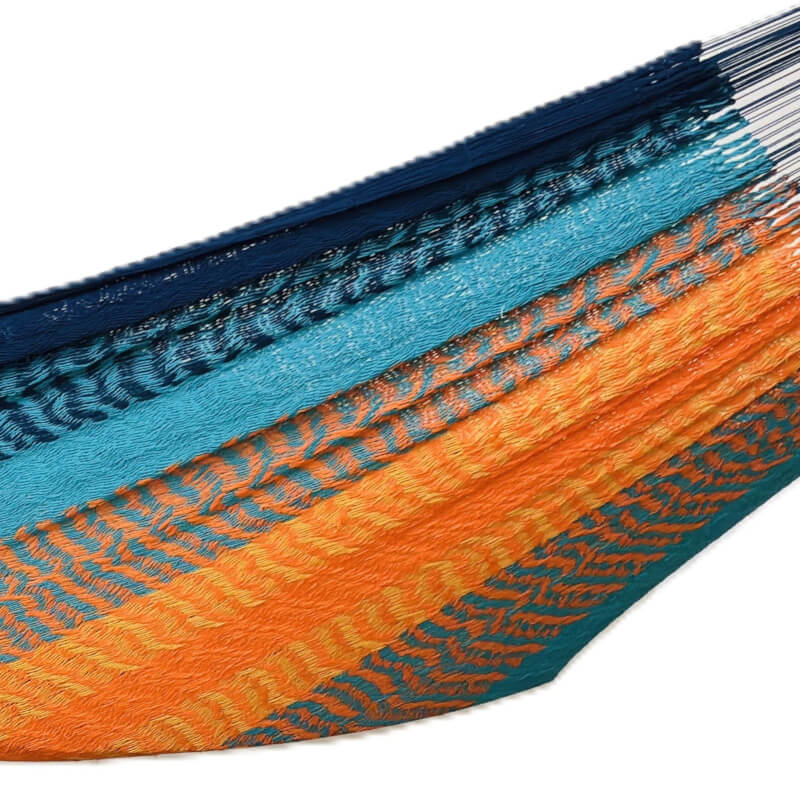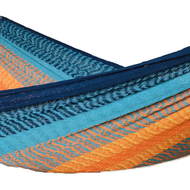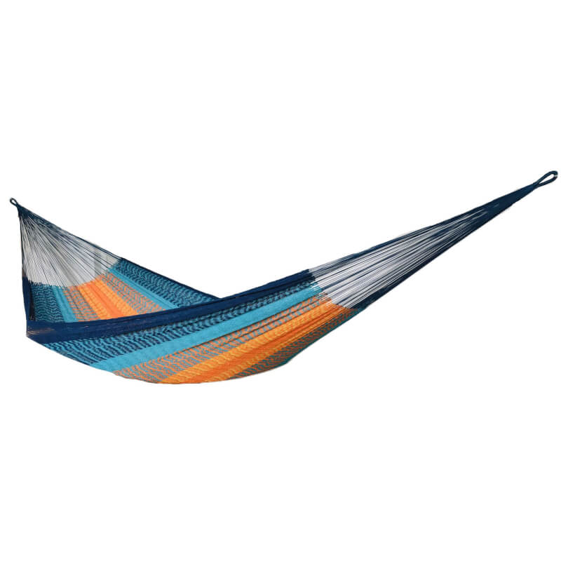 Intro: Die Solea Doppelhängematte ist eine luftdurchlässige Netzhängematte aus 100 % Baumwolle im traditionellen Maya-Stil. Sie wird in liebevoller Handarbeit gefertigt, bietet komfortablen Platz für bis zu 2 Personen und sorgt mit ihrem elastischen Netz für ein besonders entspanntes Liegegefühl. Ideal für Garten, Terrasse oder Wohnraum.